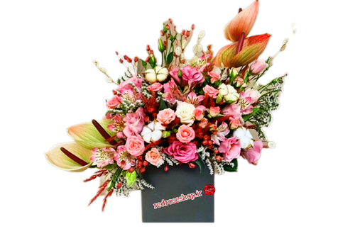 باکس گل تبریک اورینتال انتوریوم داوودی کد۴۱۱۰