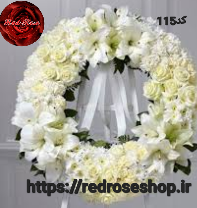 تاج گل تبریک حلقه گرد،پایہ کوتاہ۔لیلیوم رز،داوودی، اورینتال کد115