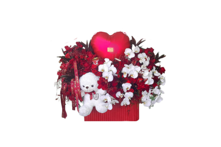 باکس گل رز و ارکیده+هدیه،ولنتاین کدw