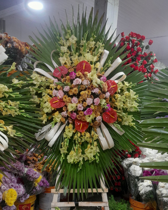 تمامی گلهای بکار رفته با نماد ثروت ،جاودانگی،دوست داشتن و مقاوت و پیروزی نقش بسزایی در انتخاب این تاج گل دارند.