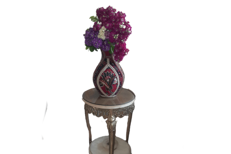 گلدان: سفالی با روکش فرش دستبافت برش خورده تبریز